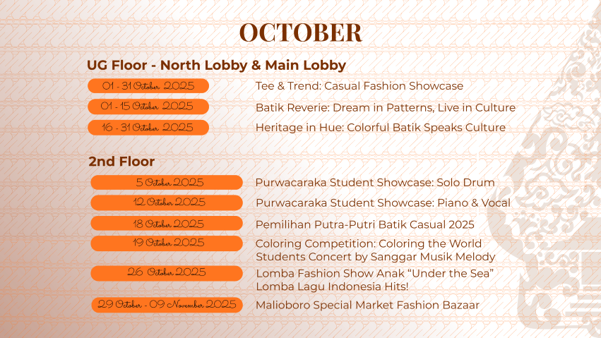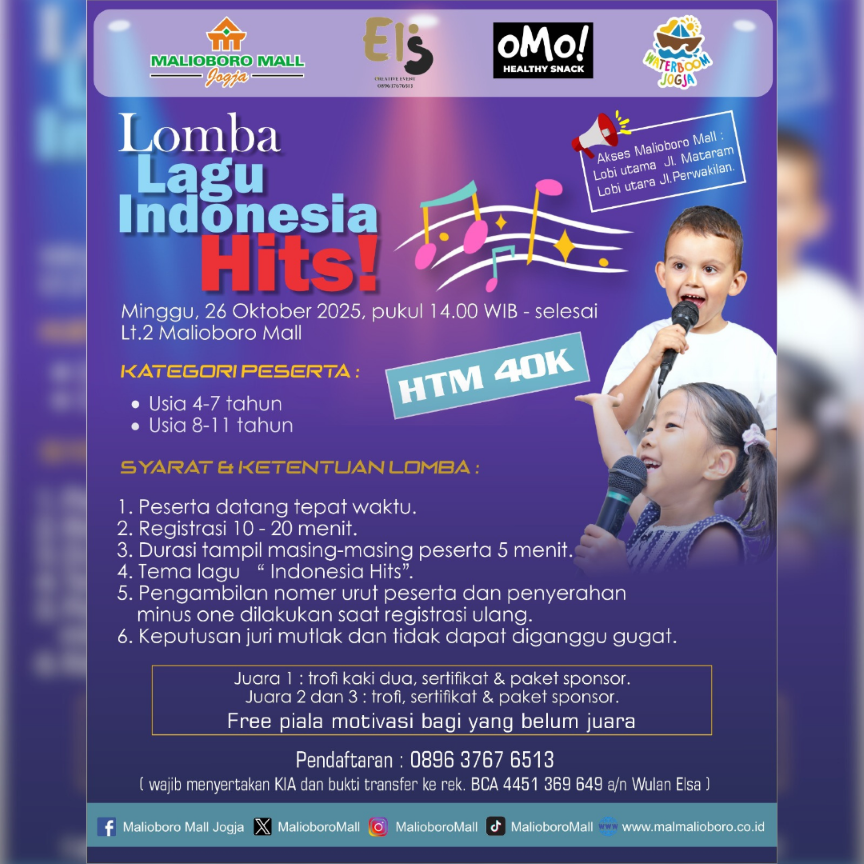 Informasi lebih lanjut mengenai tenant, pameran, dan event di Malioboro Mall dapat diperoleh di Instagram @malioboromall.